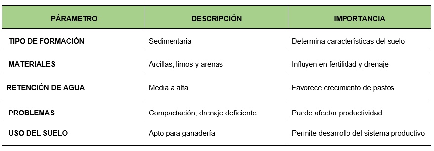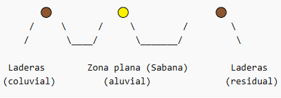 - Suelos coluviales en áreas de ladera, los cuales se caracterizan por su inestabilidad y susceptibilidad a deslizamientos.